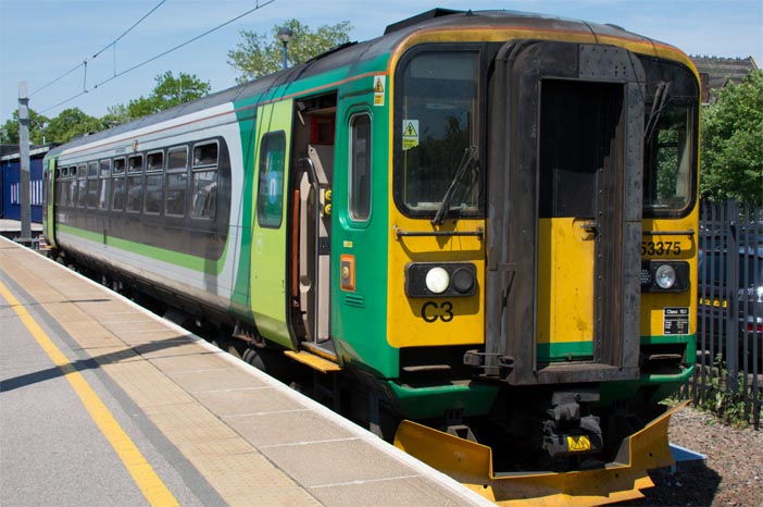 Thamslink London Midland class 153375 in the bay at Bedford station in June 2015.