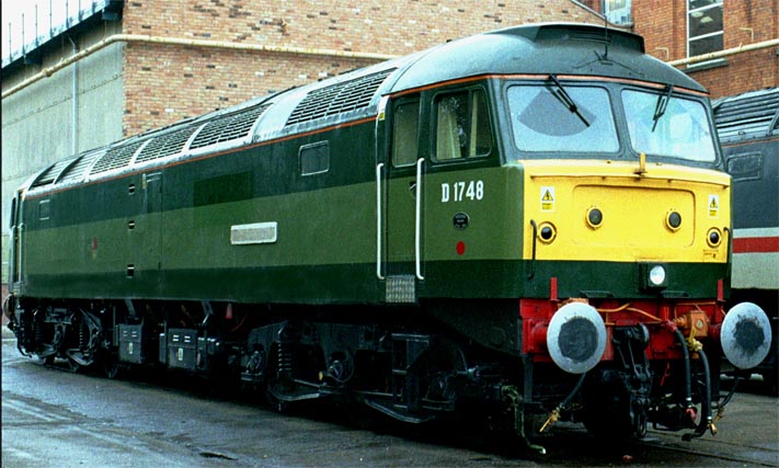 Brush Type 4 (Class 47) in two tone green as D 1748 colours at a damp Crewe Works Open Day in 2005