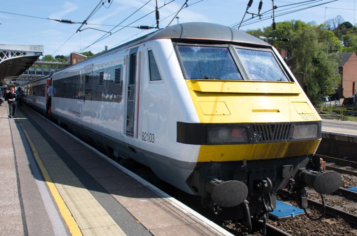 Greater Anglia Class 90014 'Norfolk and Norwich Fesival' in Ipswich station on the 5th May 2016