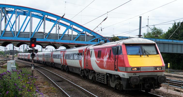 Virgin East Coast class 91129 on the down fast on the 14th August in 2016.