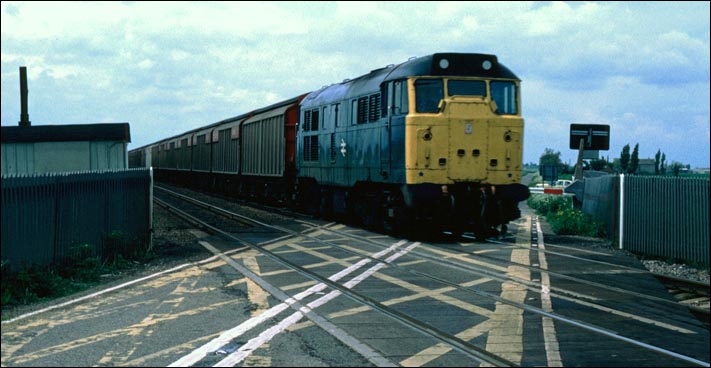 Class 31 with a freight at Turves in BR days heading for March.