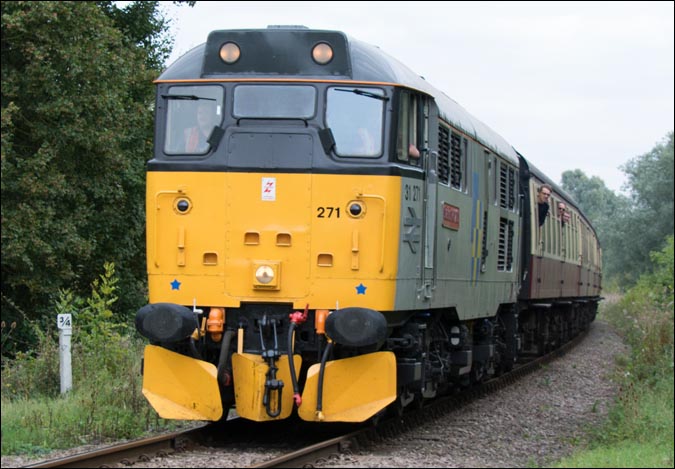 Class 31271 aso at the Yacht Club crossing at Nene Valley Railway on the 26th September 2014 on returning train to Wansford.