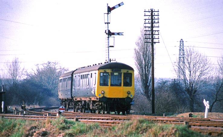 A two car DMU coming from Lincoln at the Sleaford West Junction in BR days.